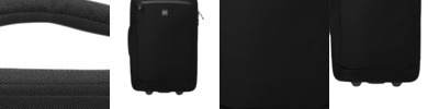 This 2-wheeled roller carry-on holds a lot and leaves plenty of room for souvenirs, too. 600D poly Durable water repellent (DWR) finish Molded back with embossed TM logo Padded top handle for quick grab and easy lifting Large main compartments with compression straps Padded side grab handle 2 wheels for easy maneuvering and increased stability Locking retractable handle Rubberized TM logo Dimensions: 21'h x 14'w x 7.5'd Capacity: 2,075 cu. in./34 L Weight: 6.6 lbs./2.99 kg Carry-on size (check airline for specific carry-on dimensions) Note: Bags not intended for use by children 12 and under.