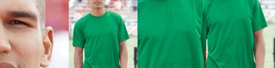 - 5.9-ounce, 90/10 poly/spandex stretch jersey with PosiCharge technology