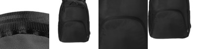 200D poly wave dobby PVC 200D recycled RPET poly mini grid dobby PU Padded wrap handle Interior left and right mesh storage pockets Contrast tipped webbing Zippered front pocket Removable, adjustable padded shoulder strap with black reflective OGIO heat transfer Luggage trolley pass through on back Padded foam bottom for strength Black reflective O icon heat transfer on front Dimensions: 12'h x 21'w x 12'd Capacity: 2,685 cu. in./44 L Weight: 1.43 lbs./0.7 kg Note: Bags not intended for use by children 12 and under.