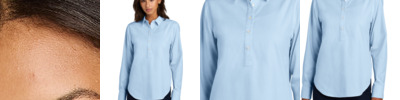 Updating the classic oxford, this modern shirt blends crispness with casual flair. Precisely tailored for an impeccable look, it has stretch to give it effortless confidence in any corporate environment. Fabric+Weight 4.1-ounce, 56/25/15/4 cotton/Lyocell/polyester/spandex Features+Benefits Stretch Easy care Open collar Popover design with button placket Pearlized buttons Drop shoulder Deep back yoke with inverted pleat Locker loop Square single-button cuffs Rounded hem with slight drop