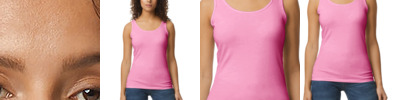 4.5-ounce, 100% ring spun cotton 90/10 cotton/poly (Sport Grey) Tearaway label Junior contoured silhouette with side seam 1-1/2' straps for S-L 1-3/4' straps for XL, 2XL Rib knit trim on neck and armholes Double-needle hem