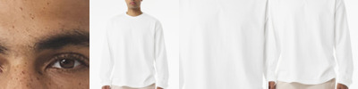 4.3-ounce, 100% combed ring spun cotton, 32 singles 90/10 cotton/polyester, 32 singles (Heather Gray) 1x1 rib knit crewneck collar and cuffs Shoulder to shoulder taping Tear-away label Side seamed 1x1 rib knit cuffs