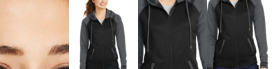 - 100% polyester knit bonded to a water-resistant film insert and a 100% polyester microfleece lining at side panels and under arms