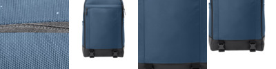 1,680D poly face-coated PU Spacious main compartment Easy-access padded laptop/tablet compartment Front slip pocket and side zippered pocket for valuables and phone Interior organization panel with zippered front and key ring Integrated padded luggage trolley pass through on back Zippered side pockets with fabric gussets for valuables and water bottles Ergonomic adjustable shoulder straps Padded back panel with hidden passport pocket Coated, grommeted zipper pulls Dimensions: 17.9'h x 12'w x 7'd; Approx. 1,428 cubic inches Capacity: 2,044 cu. in./33.5 L Weight: 2.71 lbs./1.24 kgs Laptop sleeve: 15'h x 12'w; fits most 15' laptops Note: Bags not intended for use by children 12 and under.